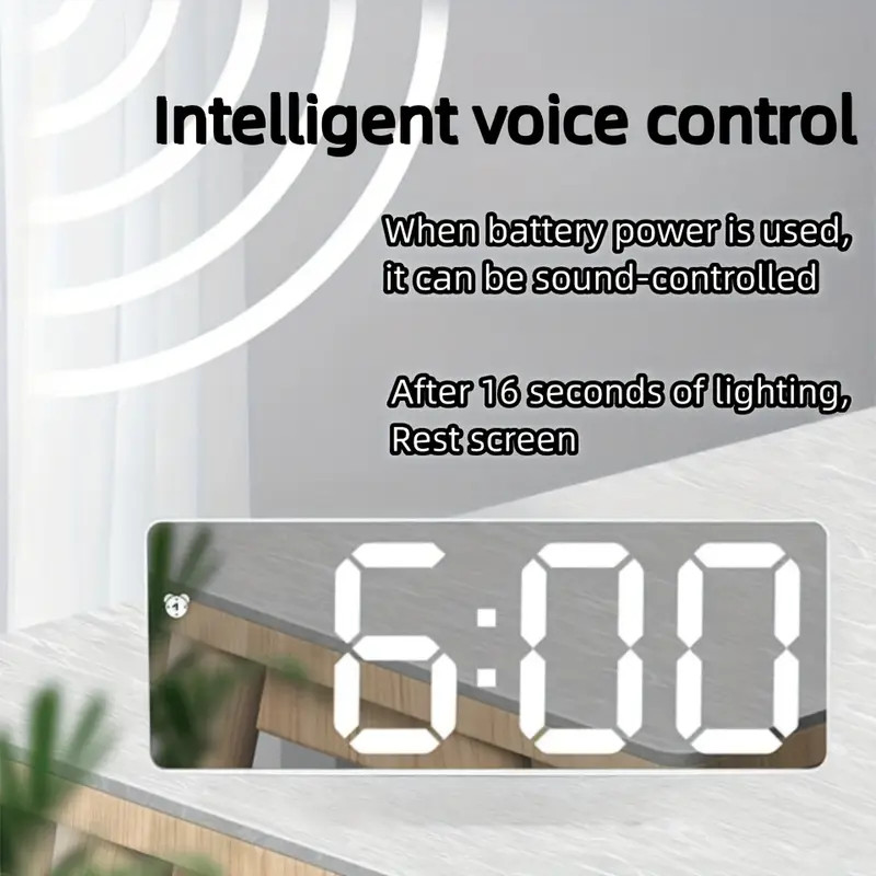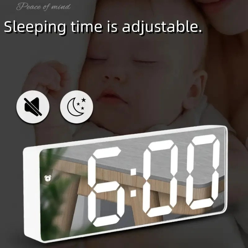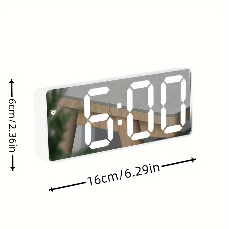 Reloj de noche con espejo LED, luz nocturna/función de repetición/12/24H/dos brillos ajustables/pantalla grande, batería/enchufe/dos fuentes de alimentación, reloj moderno, decoración para dormitorio/escritorio de ordenador/oficina