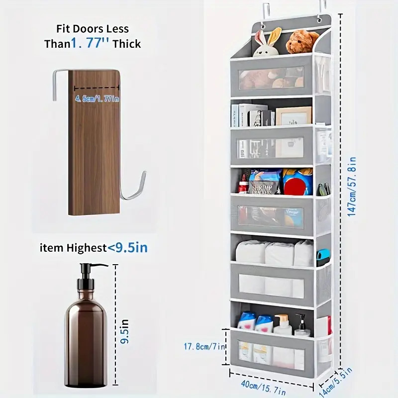 Organizador de almacenamiento colgado, Organizador de puerta, Organizador de almacenamiento de armario colgado, 4 estantes, 4 bolsillos de gran capacidad, para dormitorio, baño, despensa, almacenamiento en casa