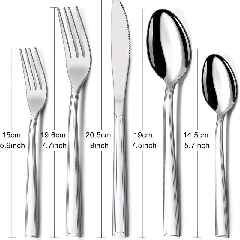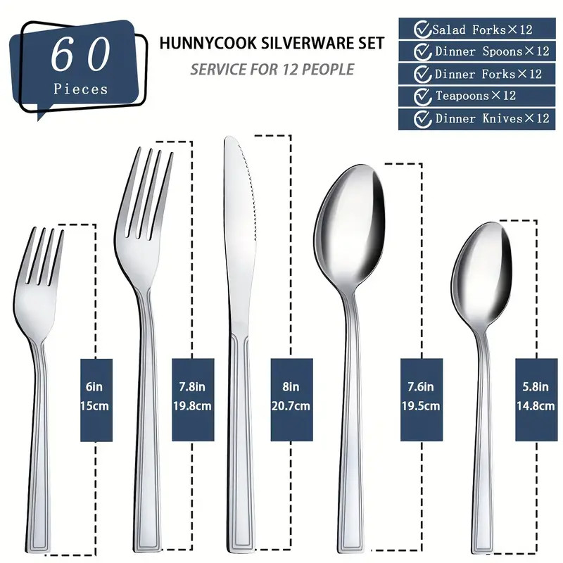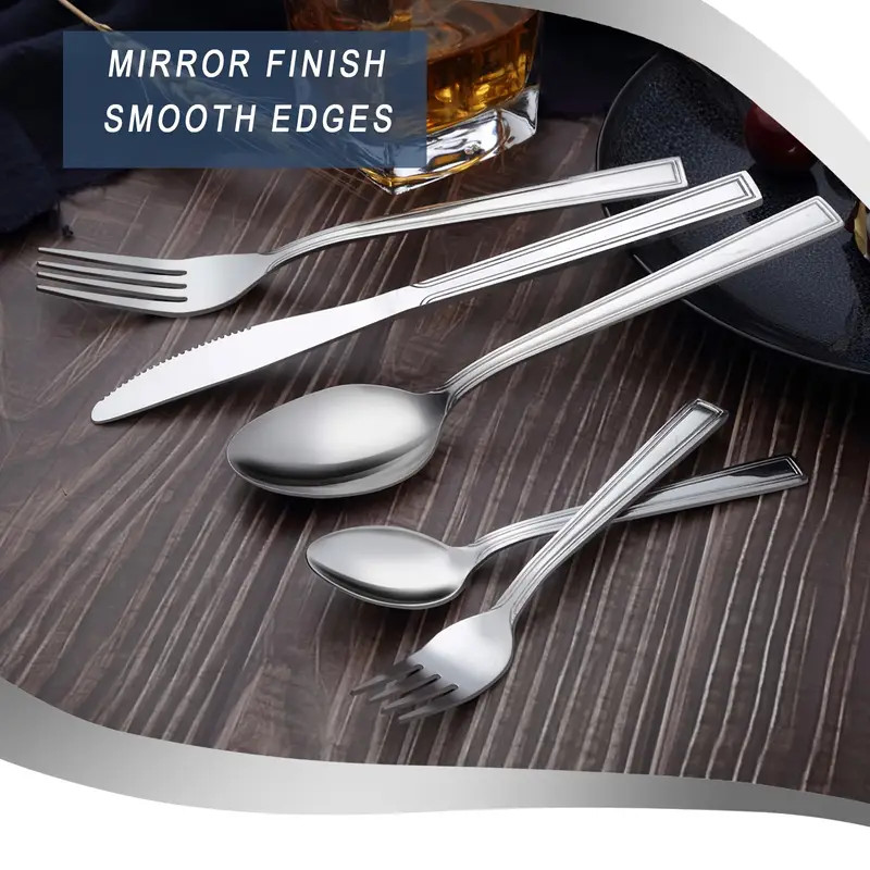 Juego de Cubiertos de Acero Inoxidable de 60 Piezas, Cuchillo, Tenedor y Cuchara, Adecuado para 12 Personas, Juego de Cubiertos de Acero Inoxidable con Cuchillo, Tenedor y Cuchara, Adecuado para Restaurantes, Fiestas, Bodas, Diseño Clásico de Rayas, Apto para Lavavajillas